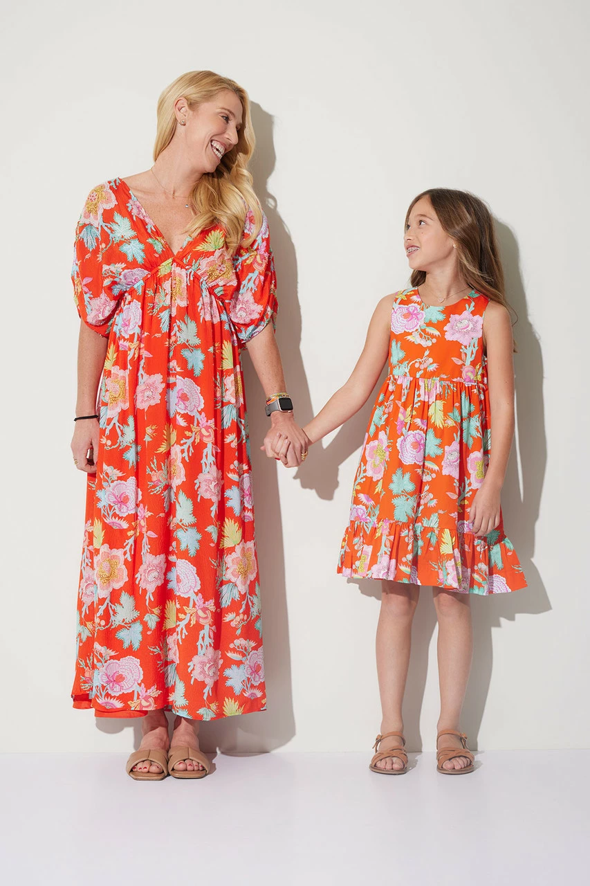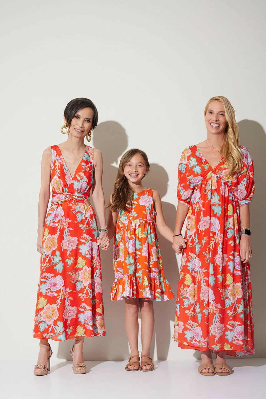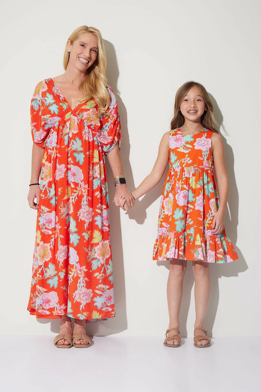 Now your littles can match back to you. Blossoming, vibrant florals come to life on the Amanpulo print.