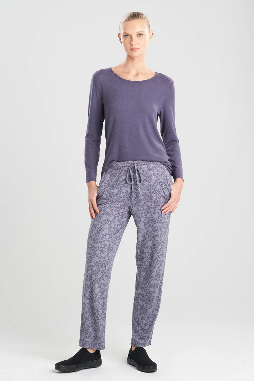 Cozy up in an ultra-soft and lightweight sweater knit. This relaxed but slimming pant with an elastic waistband and drawstring is the perfect separate lounging pant.
