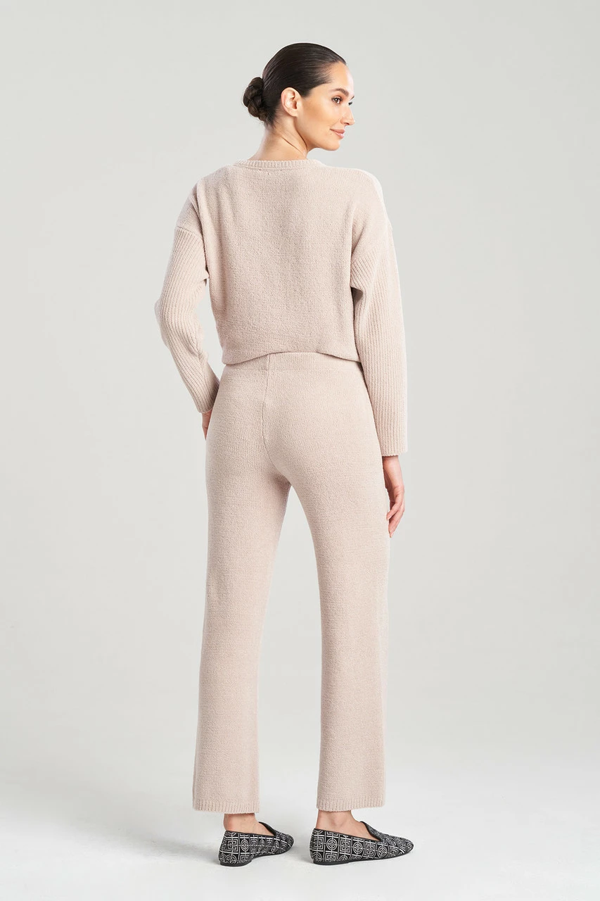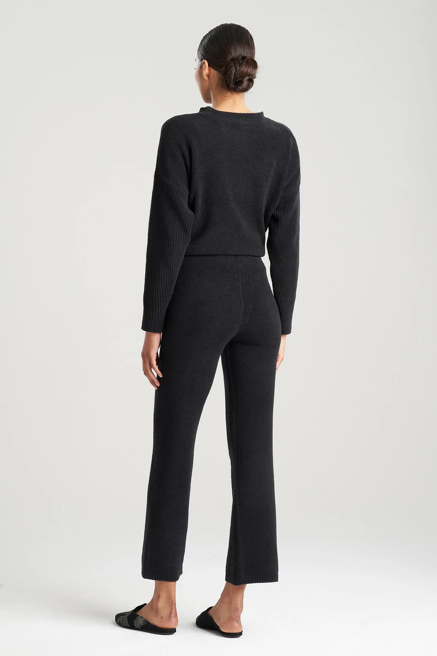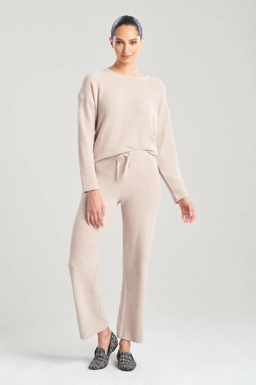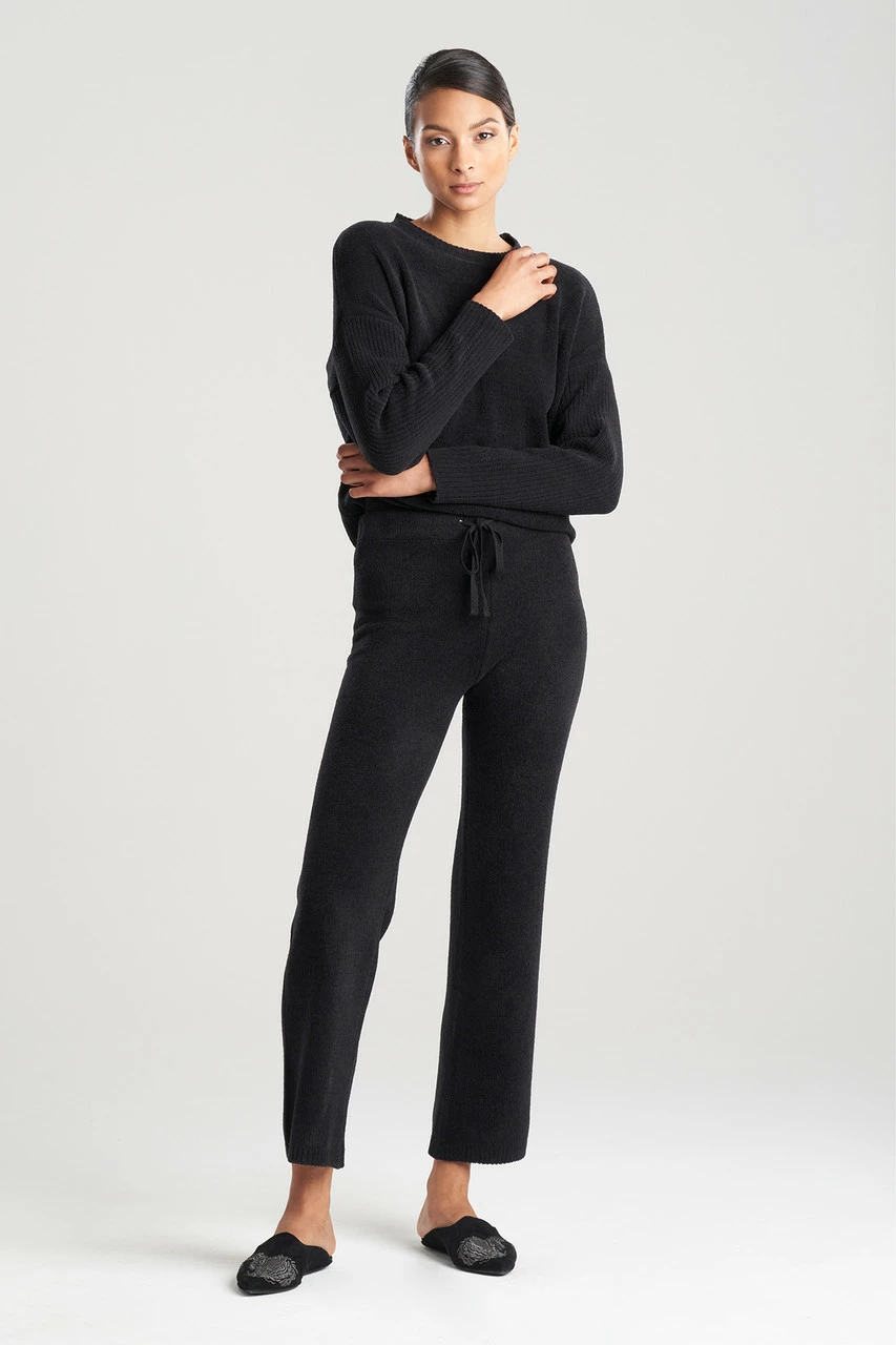 - Pullover straight leg pant with elastic waistband and drawstring with rib details on the hem