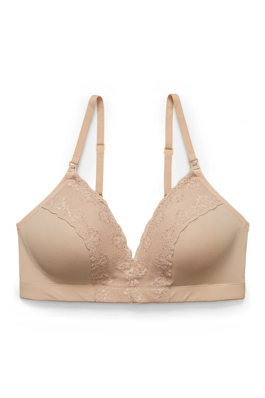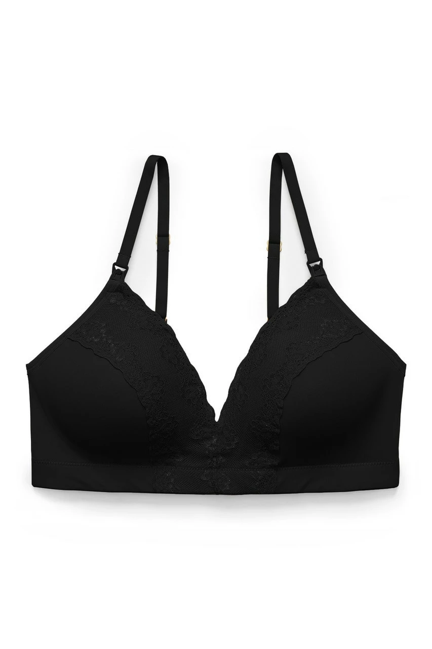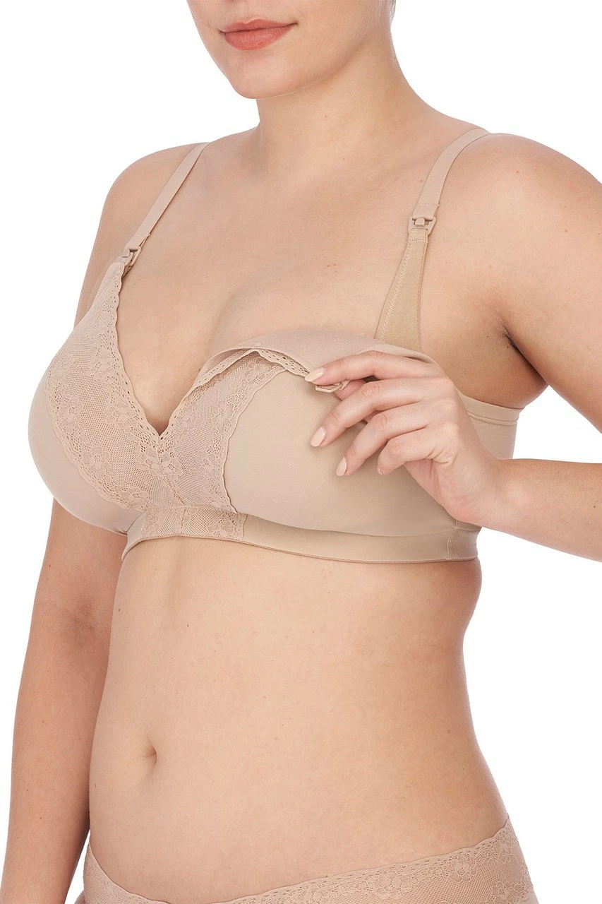 Bliss Perfection signature 4-way stretch fabric and plush lace trim adds a luxurious feel and look to this wireless nursing bra.