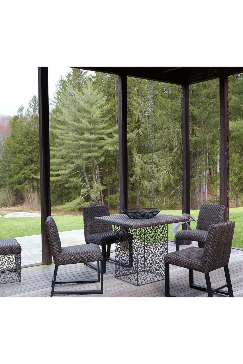 Sawali weaving, indigenous to the Philippine Islands and used in the weaving of the matting for walls and ceilings, is uniquely combined with the Natori screen design in metal