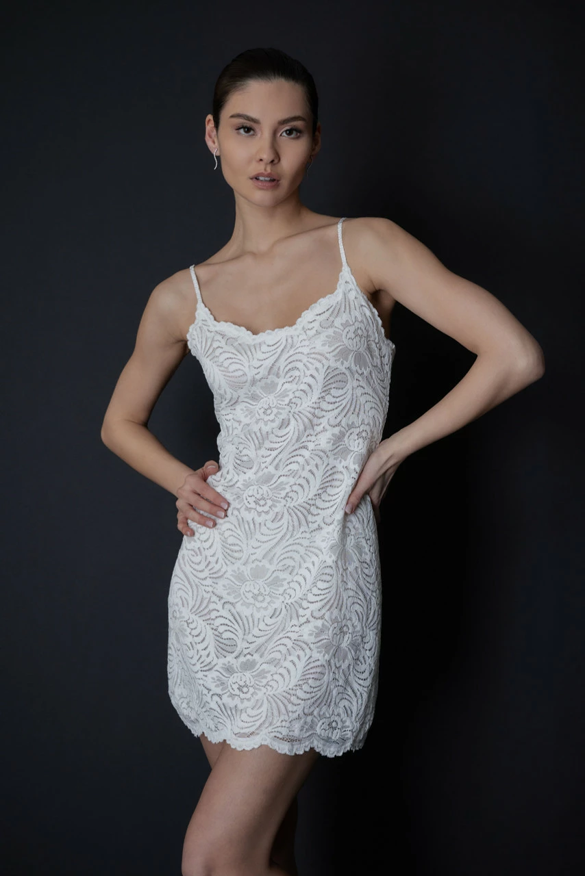 Lacy and luxe with just enough stretch. This bridal chemise is the perfect keepsake for your special day.