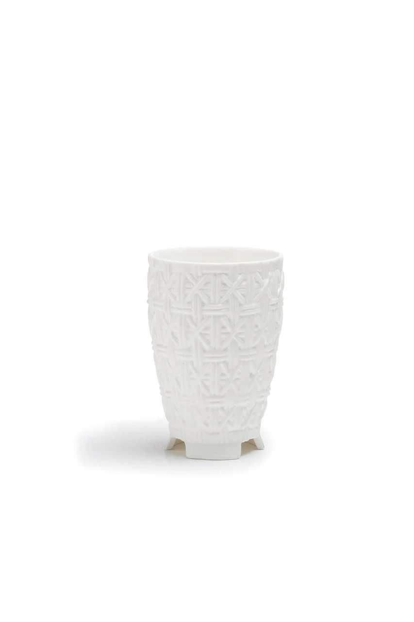 The bone china is pierced with Natori screen patterns; embossed and de-bossed with Natori textile weaves creating works of art