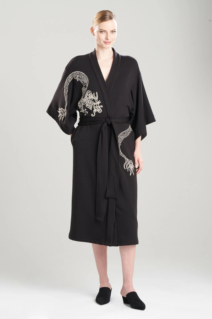 - Our relaxed and comfortable robe with a self tie belt and side seam pockets. Beautiful and unique dragon embroidery