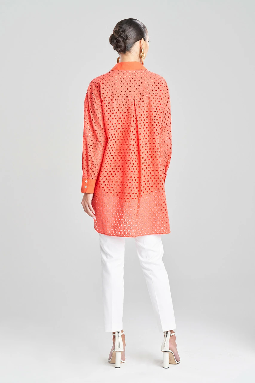 - Oversized shirt in sheer eyelet cotton with combo cami and button down front