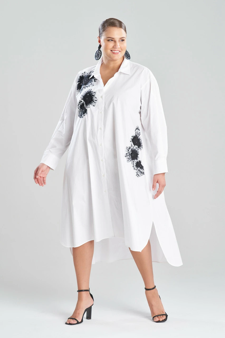 - Applique embroidery time: 2 hours 40 mins, pockets at side seam, button down front
