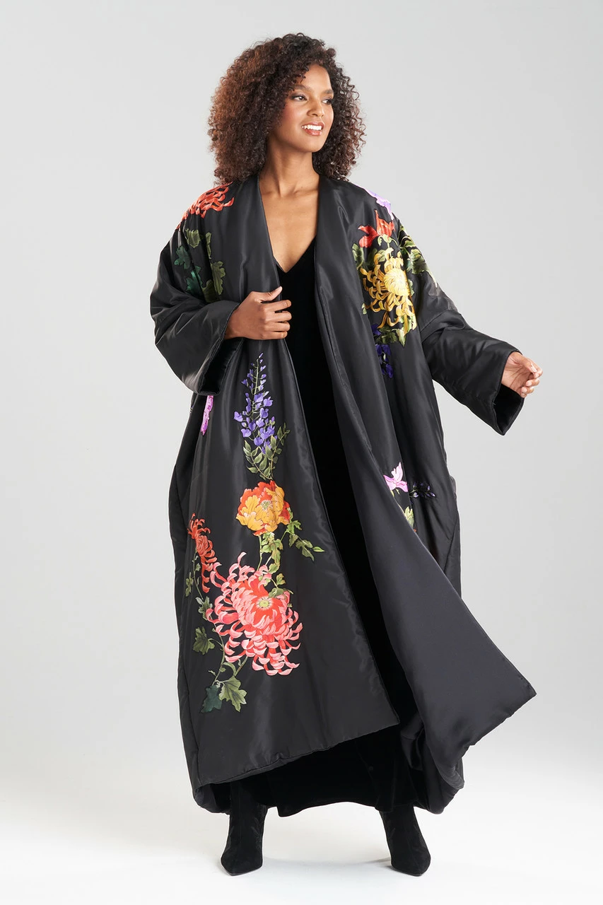 - Padded cocoon wrap in our luxe silk taffeta with applique