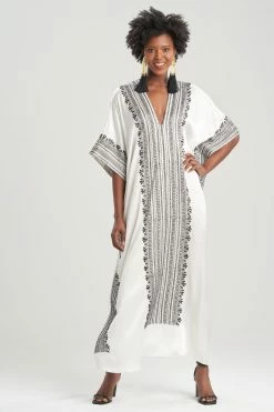 Made of silk with contrasting embroidery, the Zehra caftan is a modern classic.