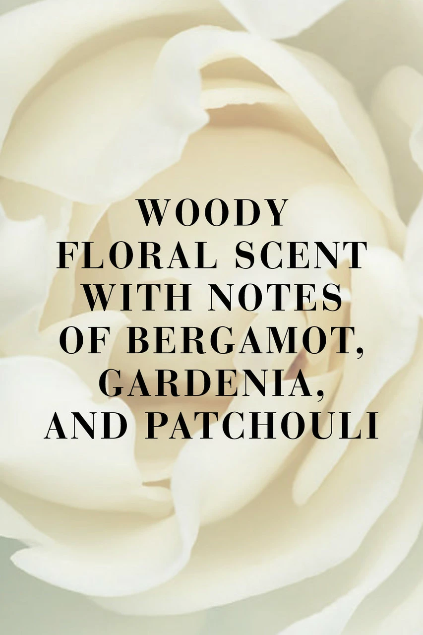 Woody floral scent with notes of bergamot, gardenia, and patchouli