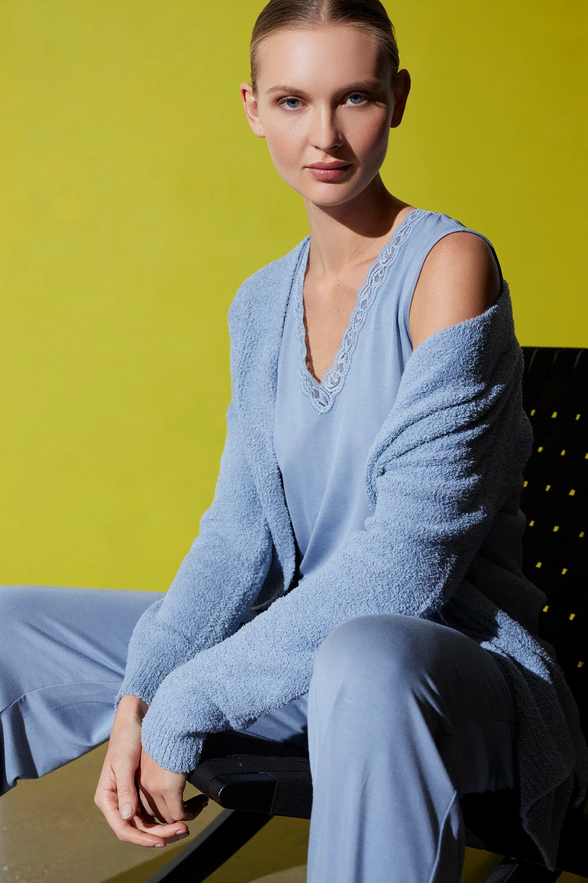 Lace applique at neckline