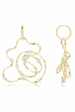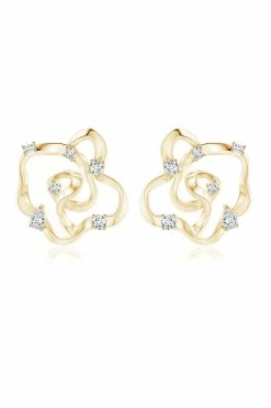 Shangri-La Brushstroke 14k Gold And Diamond Stud Earrings
