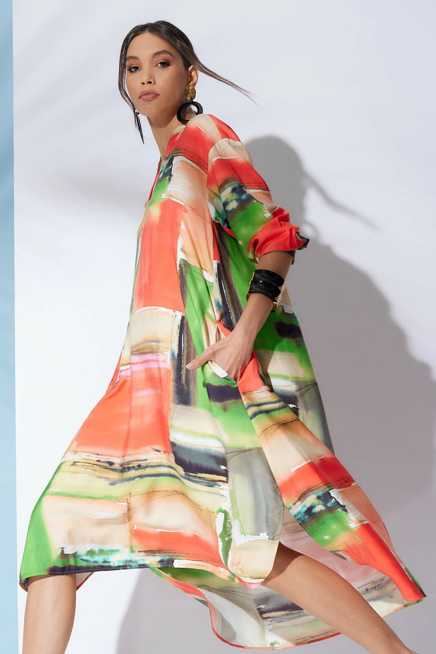- Pullover, oversized fit, center front placket and collar, pockets at side seam, cuffed button sleeve