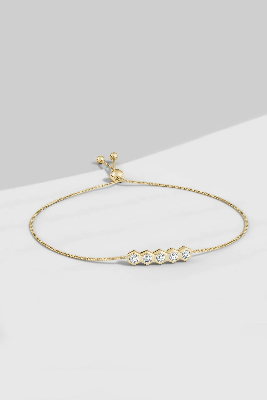 - 14K yellow gold with 3mm bezel diamonds, 0.53 total carat weight