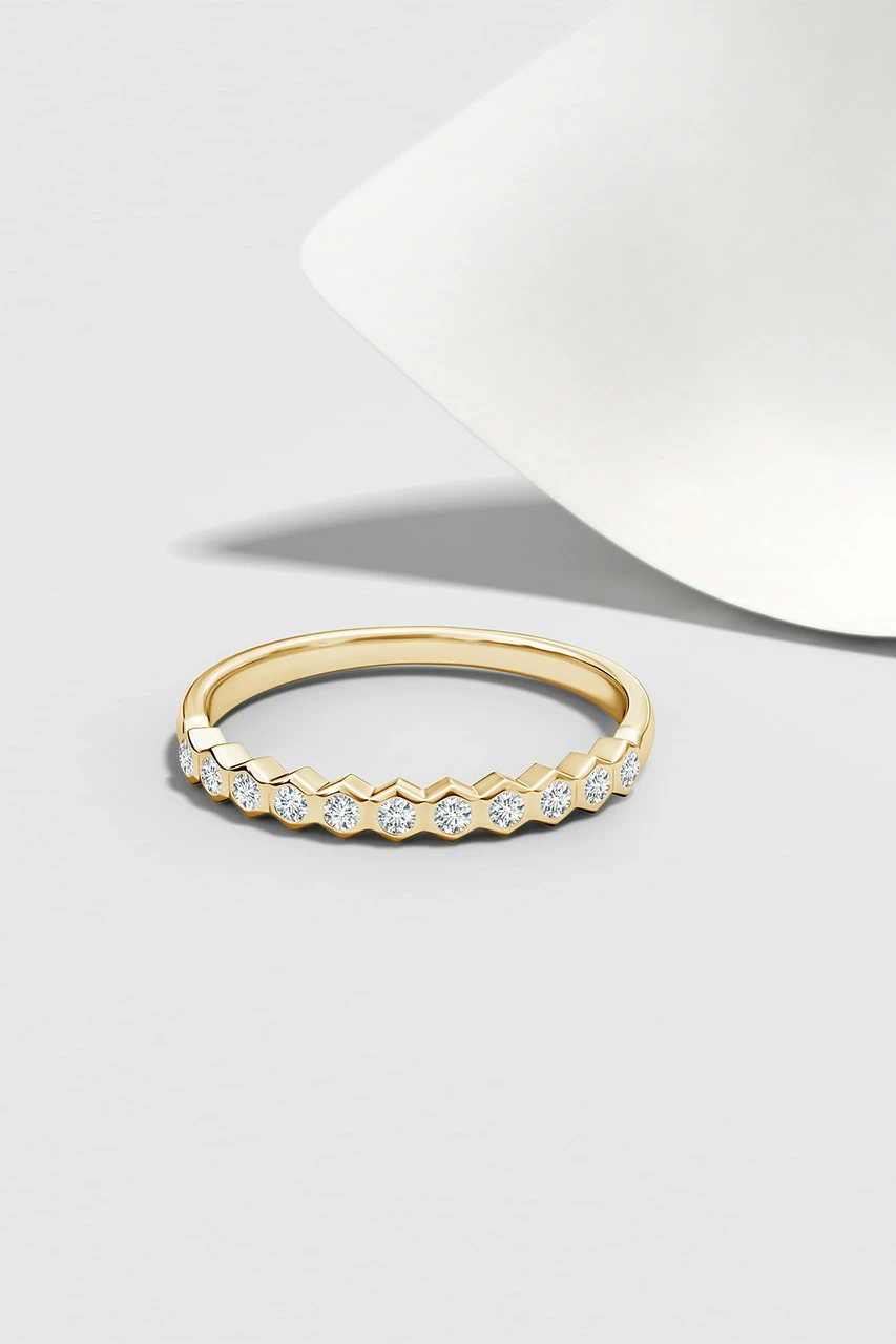 3mm bezel diamonds, 0.315 total carat weight - Recommended care: wipe with a soft and dry cloth for renewed shine, keep away from harsh chemicals.
