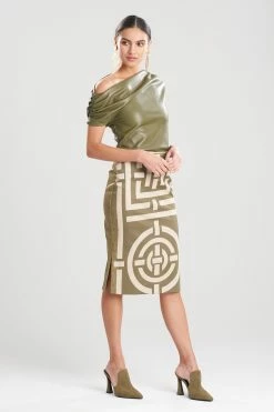 - Mid length pencil skirt for day or night with our iconic “Infinity” logo