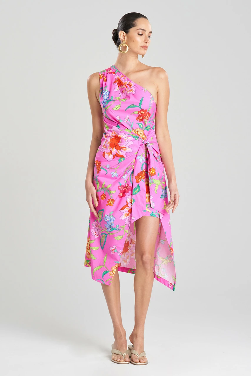 - Flattering one shoulder wrap dress in opulent Junko print, perfect for occasion or vacation wear