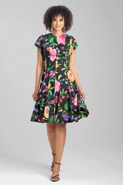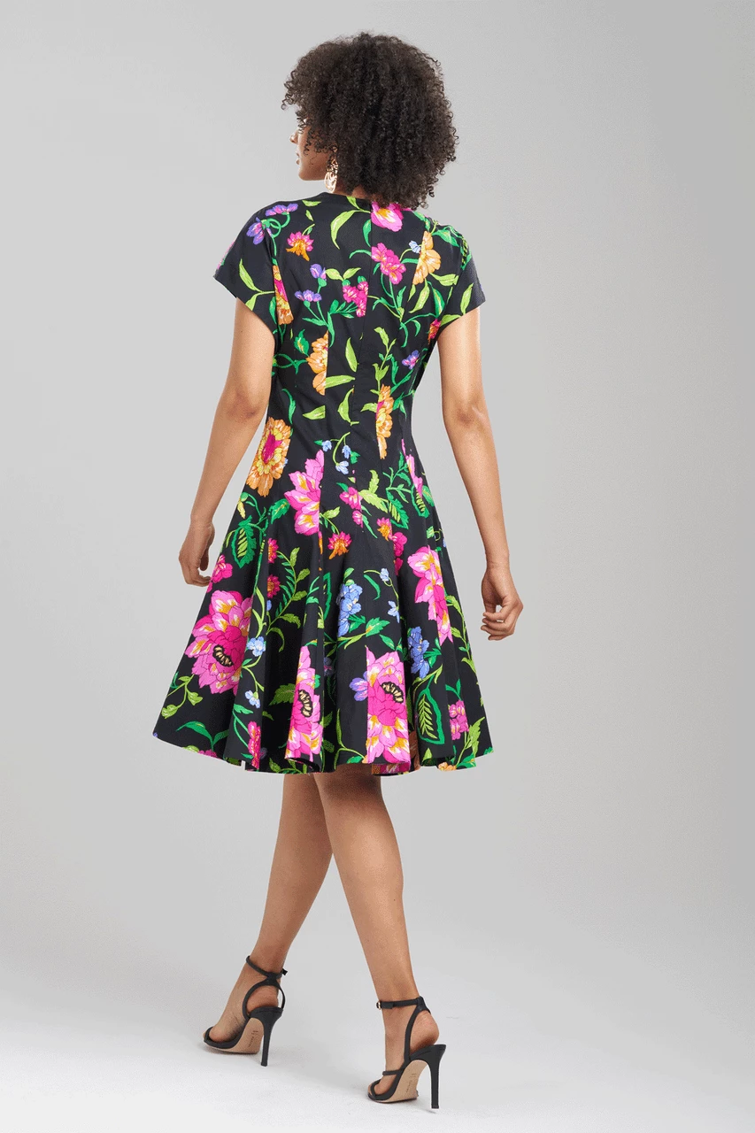 - Fit and flare dress with invisible zipper and hook and eye at center back