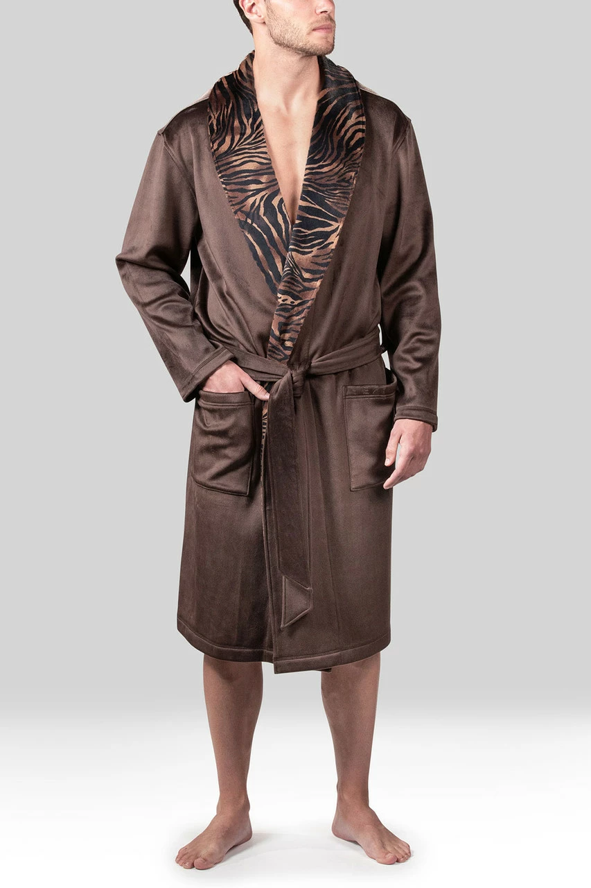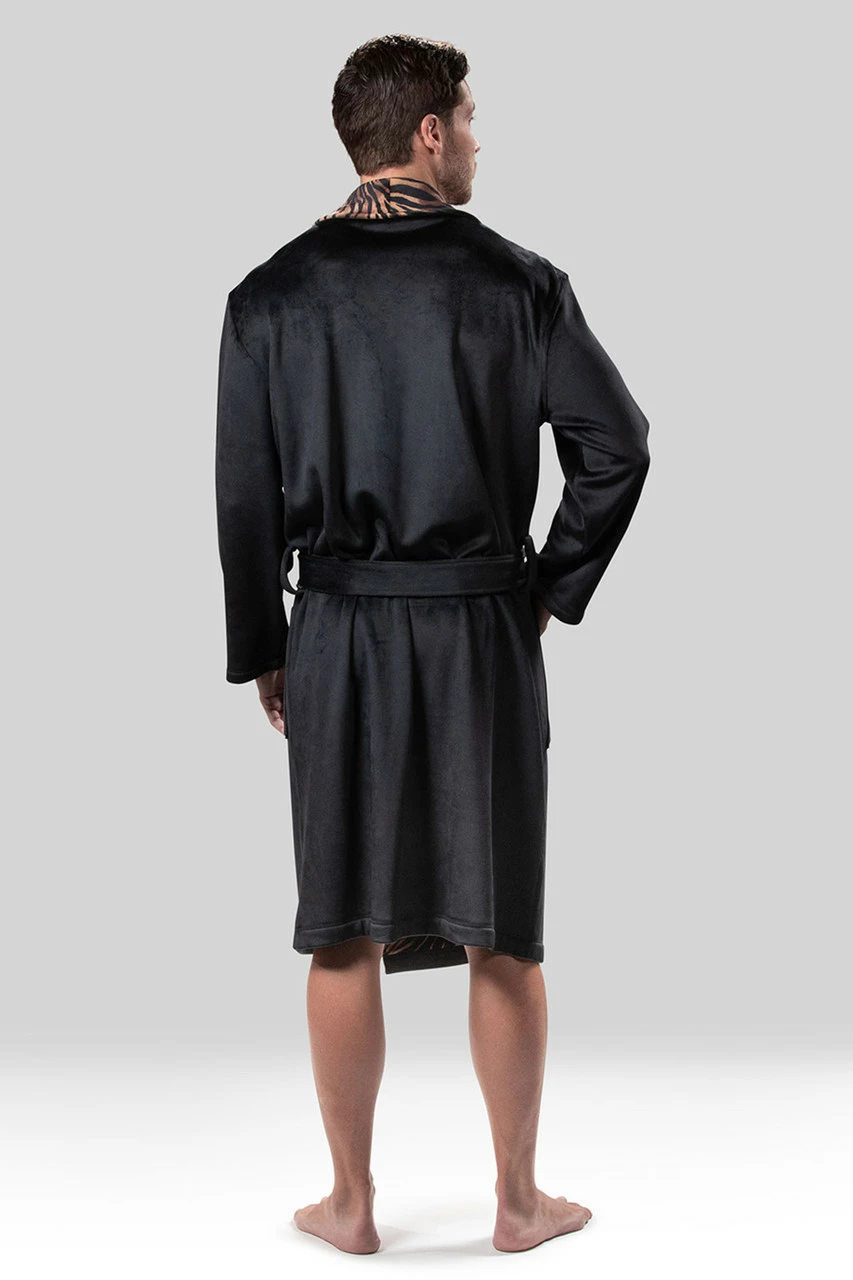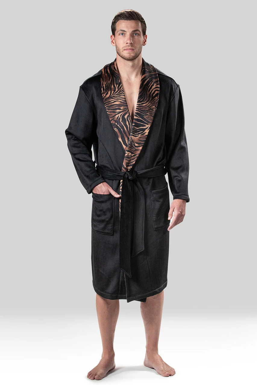 Classic robe with shawl collar, self fabric belt, and deep pockets