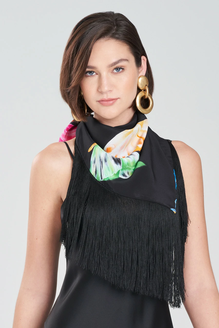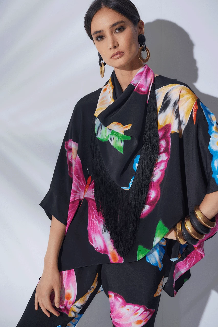 Embrace your femininity with an enchanted arrangement of vibrant butterflies printed on silk crepe de chine.