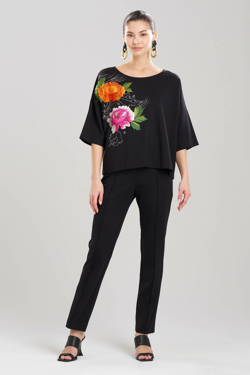 - Oversized fit, floral embroidery, short sleeve, boat neckline, embroidery time: 2 hours, 30 mins