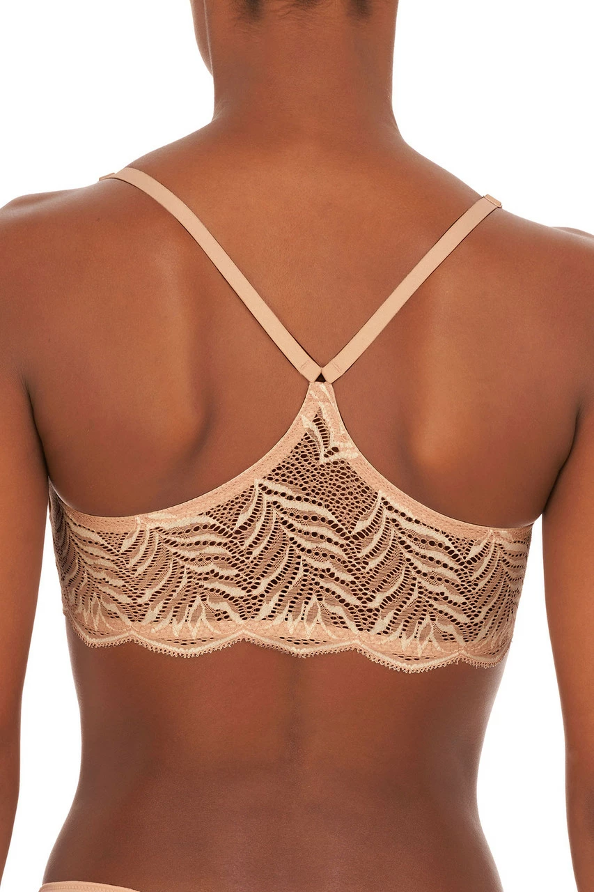 The perfect balance of femininity and comfort. Luxurious lace back coverage and ultra soft pads in a front close contour underwire offer a flattering, feel good fit.
