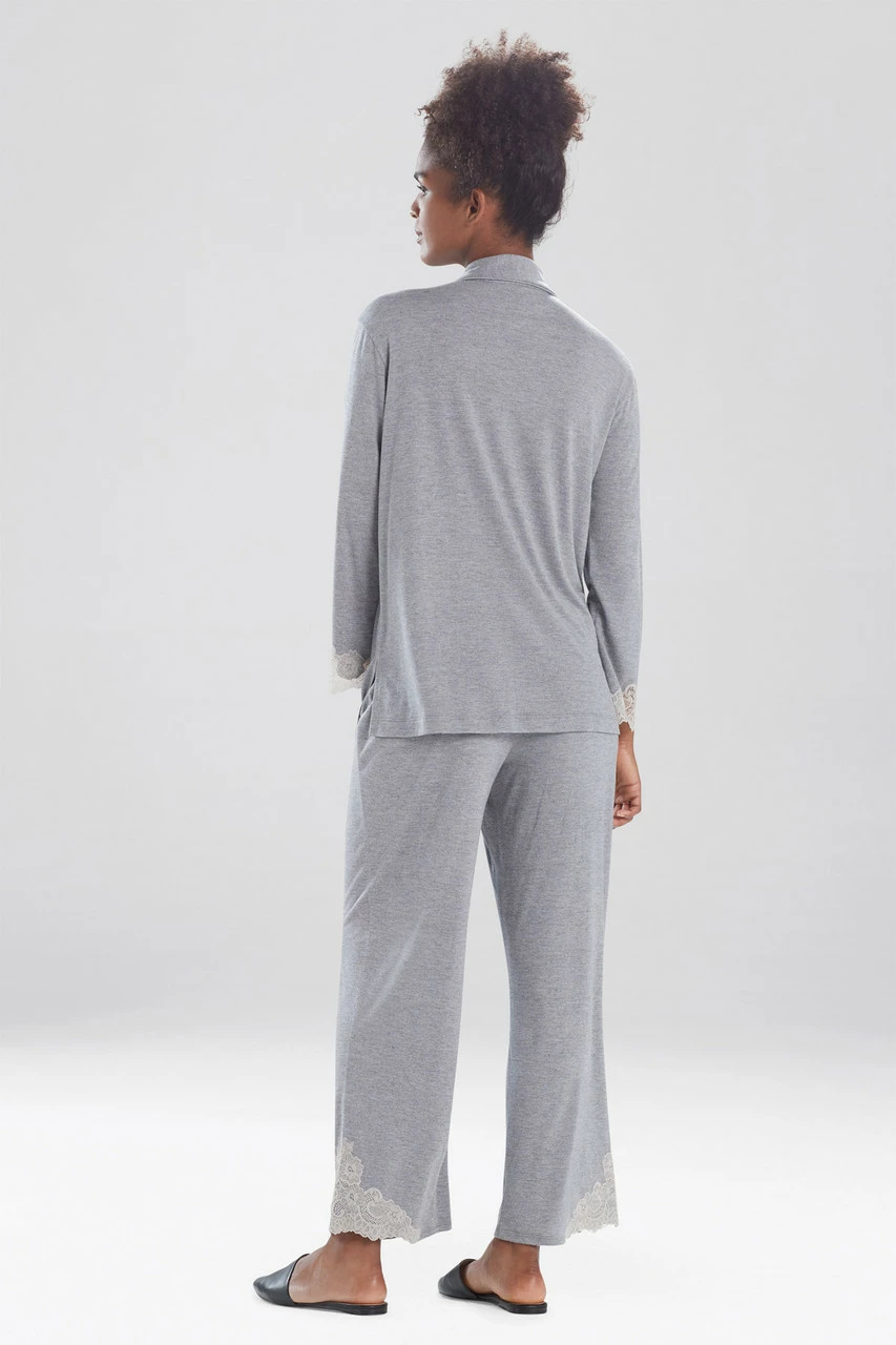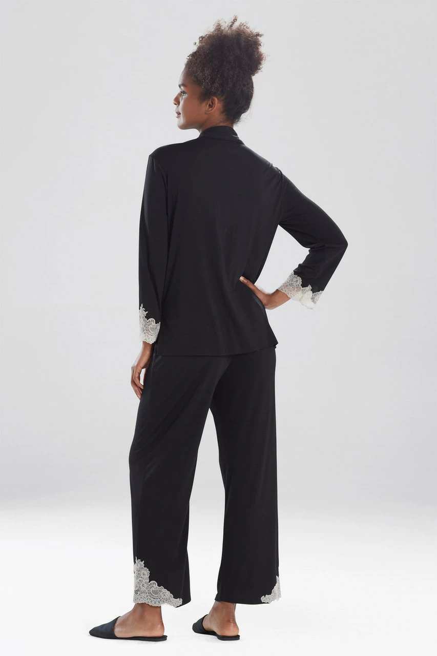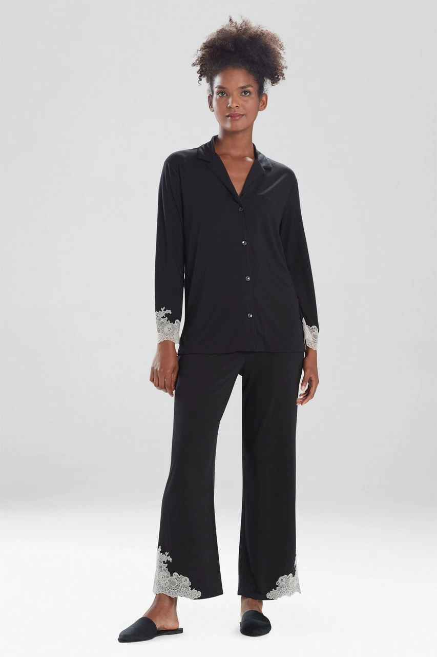 - Lace appliqué at front sleeve opening for top and bottom at leg opening side