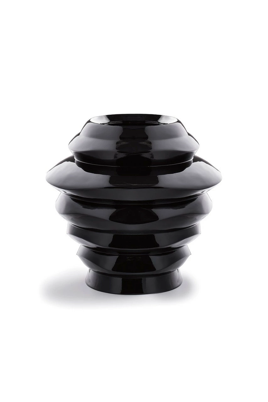 A collection of vases made from Marmorcast, a high-grade scratch-resistant polymer molded in a unique spiral concept and finished in high-gloss piano black