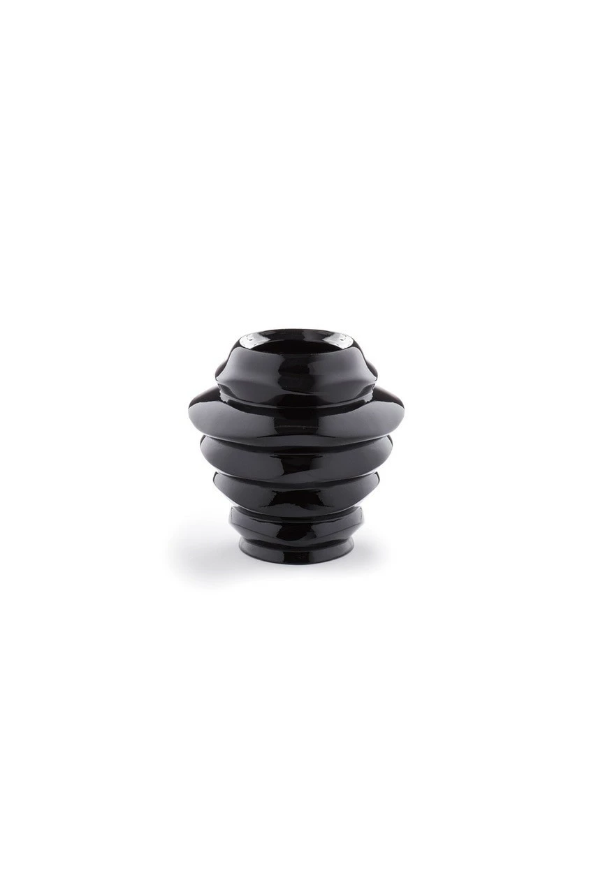 A collection of vases made from Marmorcast, a high-grade scratch-resistant polymer molded in a unique spiral concept and finished in high-gloss piano black