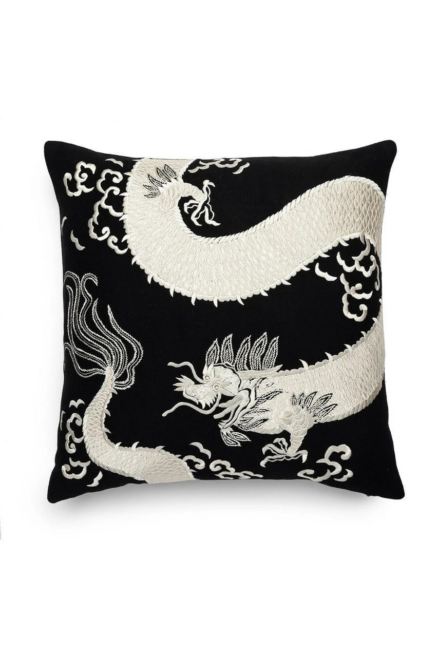 Mayon Dragon Embroidery Pillow – Black/Cream