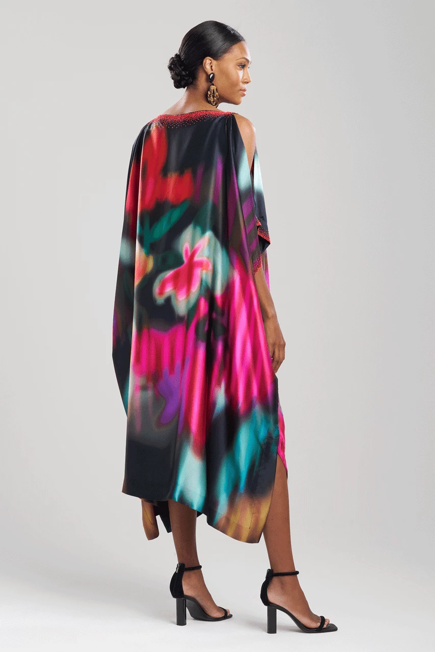 One-of-a-kind, artful watercolor printed on silk charmeuse.