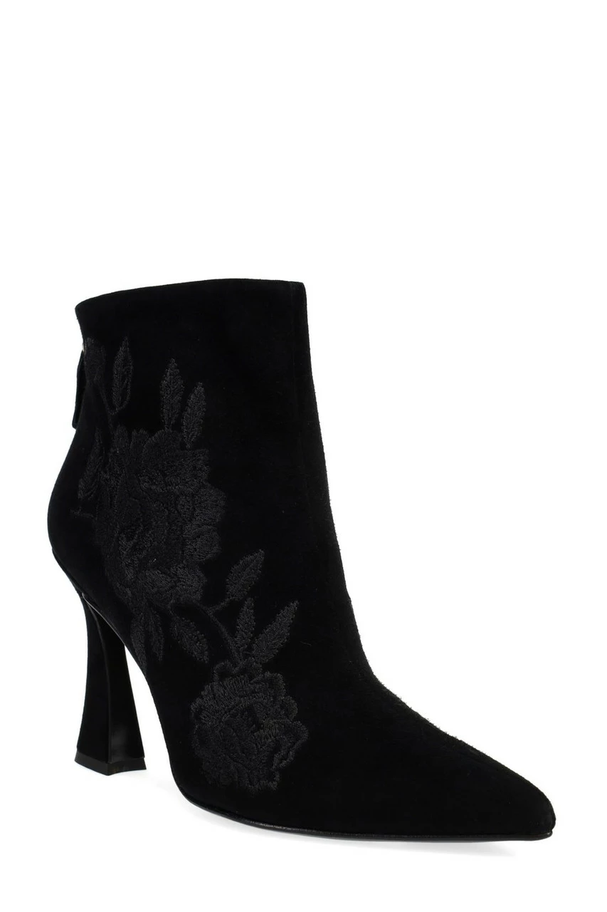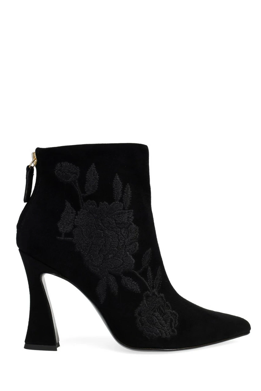 A soft, feminine statement to a classic ankle bootie with our embroidered Shugo print.