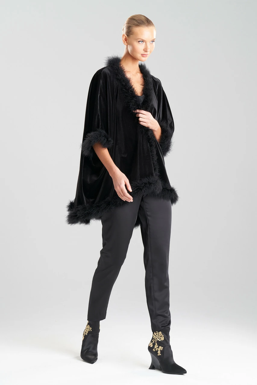 - Feathers on neckline, sweep and armhole