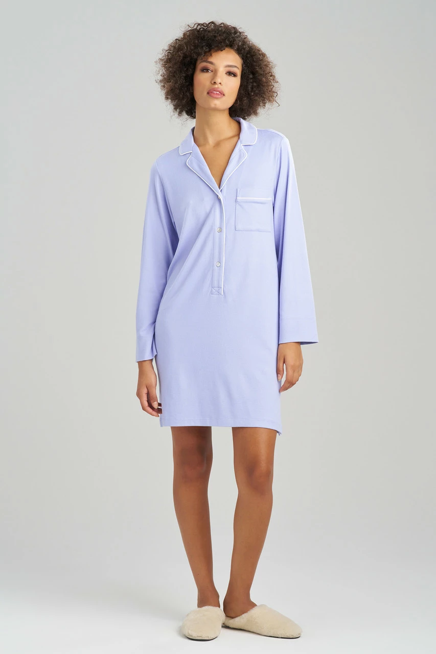 - White piping on the button front collar and pocket