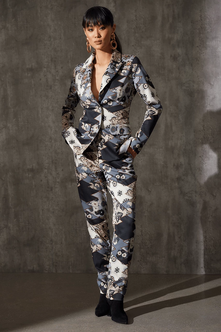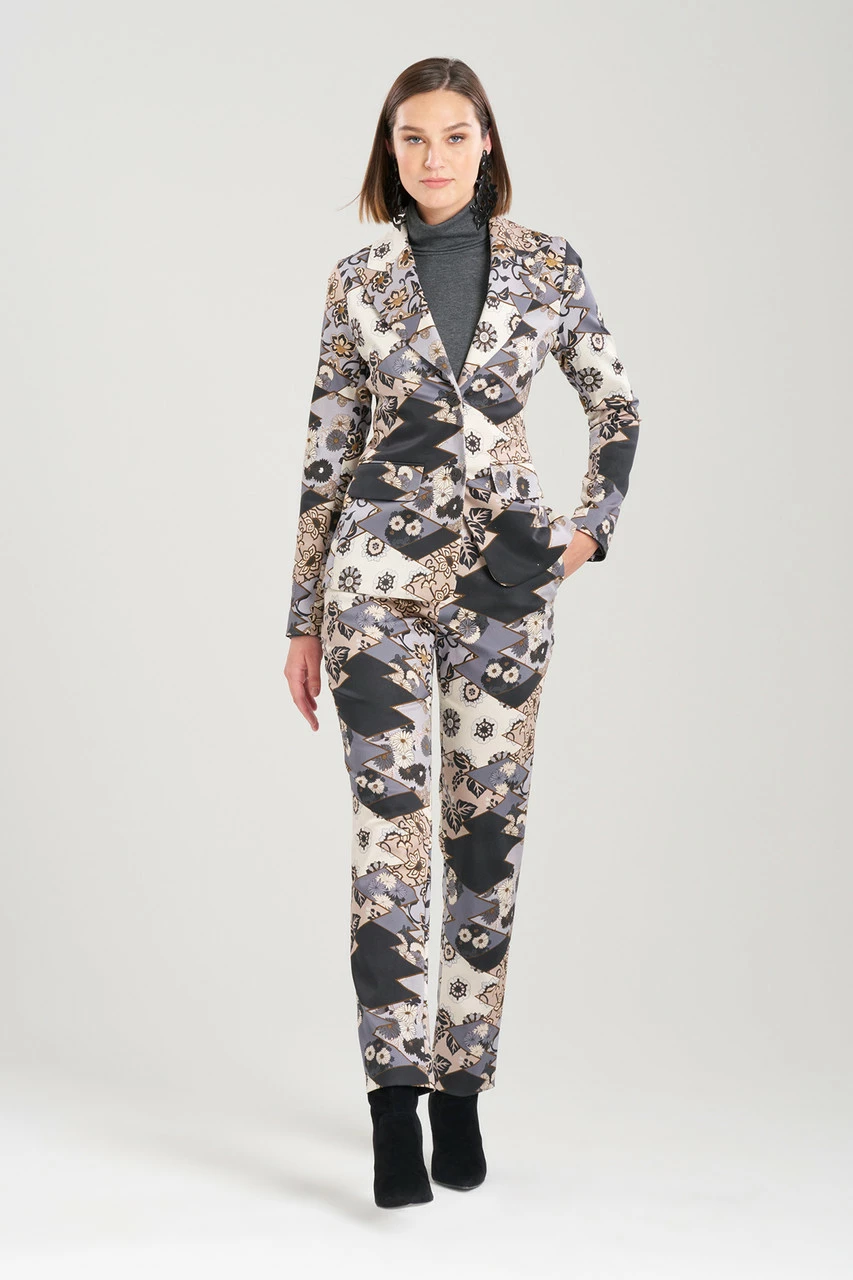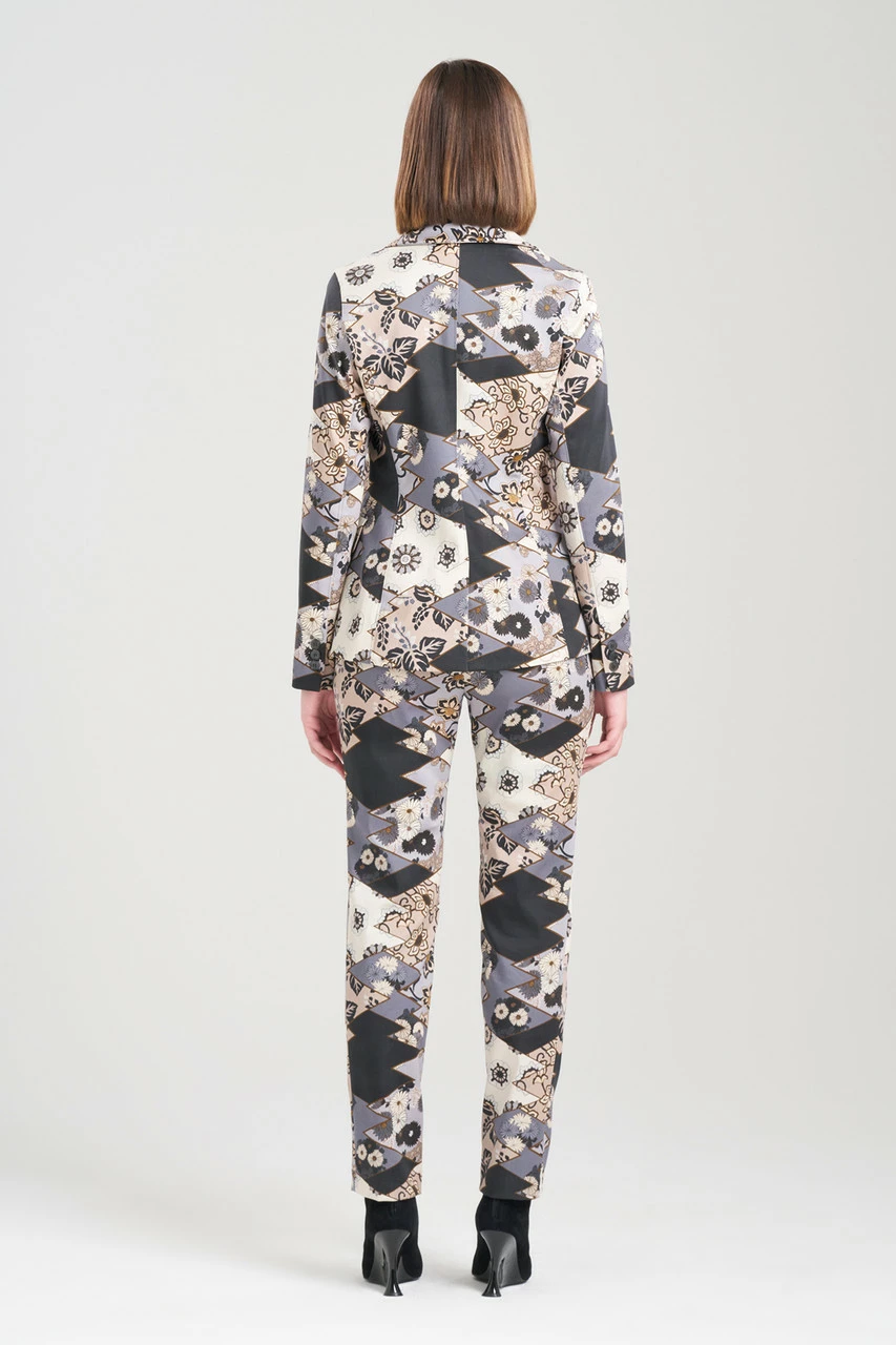 Detailed tonal patchwork meets stretchy cotton chino.
