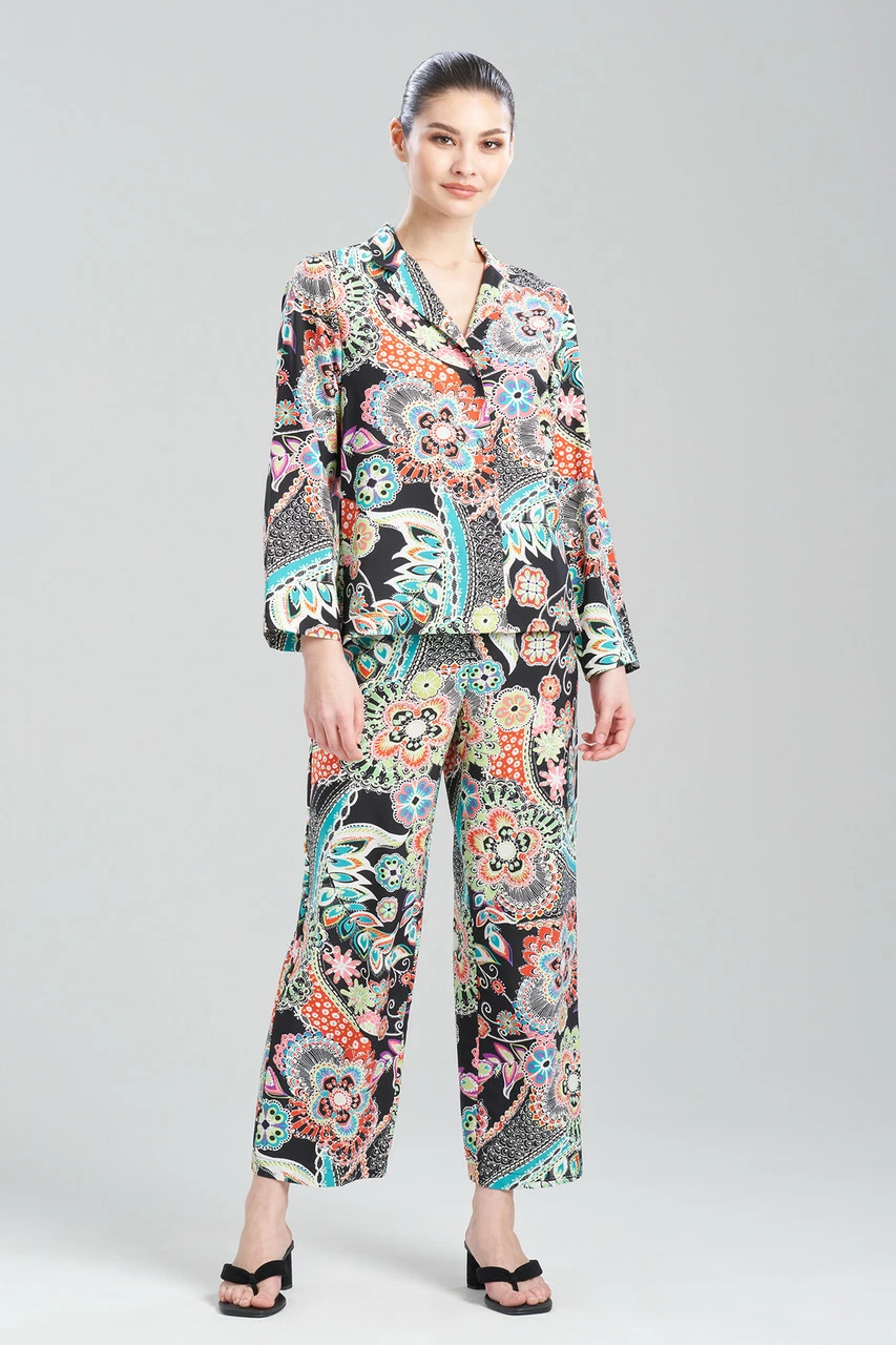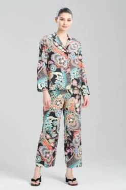 - Long sleeve top with classic notch PJ collar and spacious fitting pants
