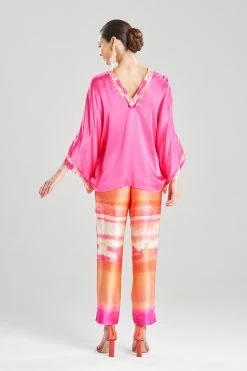 Key Essentials Embroidered Kimono Sleeve Silk Top