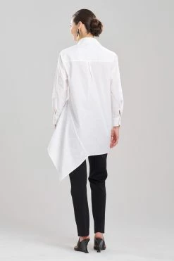 Cotton Poplin Asymmetrical Embroidered Flounce Shirt