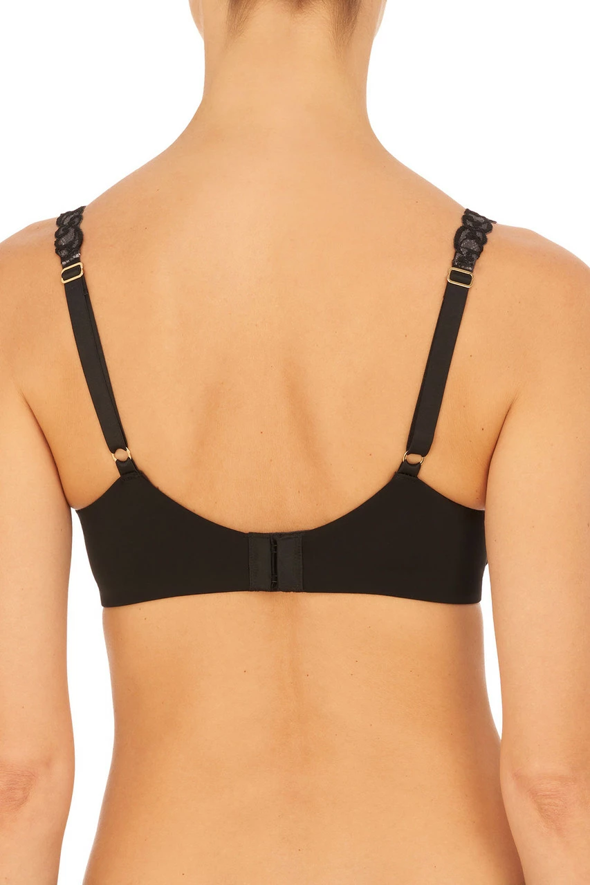 - 2-ply backs are smoothing and comfortable. Signature Pure Luxe lace trim at the front straps paired with Natori logo straps at the back.
