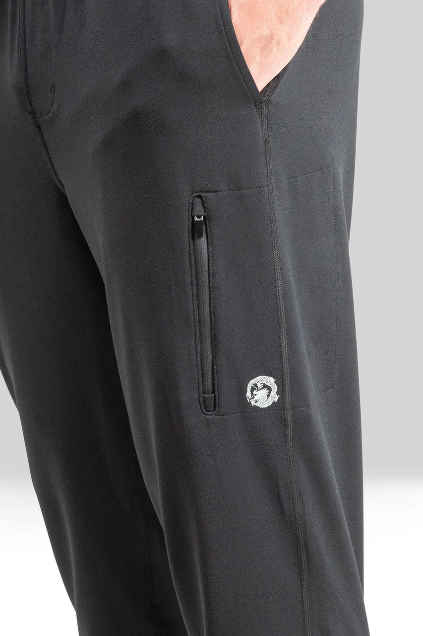 Slash front pockets, plus front leg media pocket, & back zip pocket