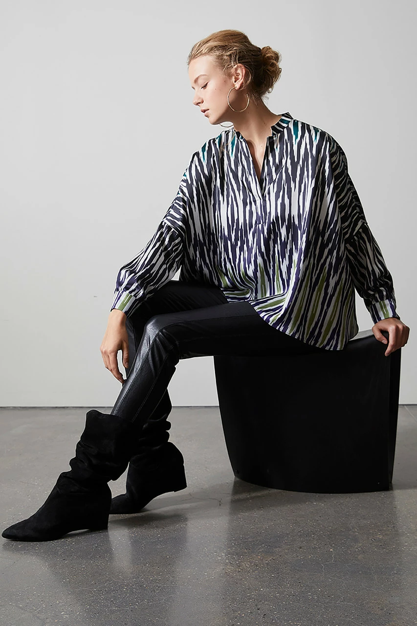 A journey across the ancient “Silk Routes” through Central Asia, the Fall 2021 Natori Odyssey collection exudes graphic expressions and stylized traditional motifs.