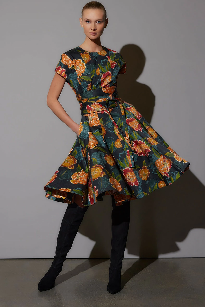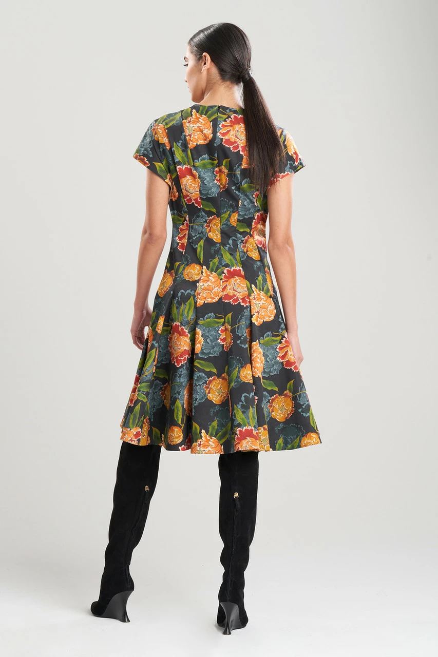 - A dress that accentuates the waist and flares off below the hips, beautiful pleat details for an elevated look