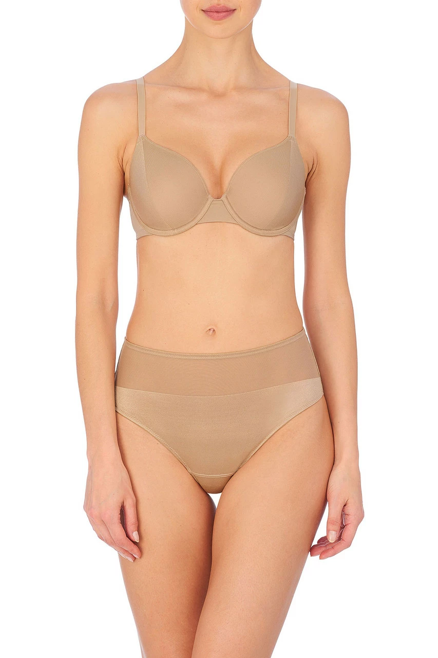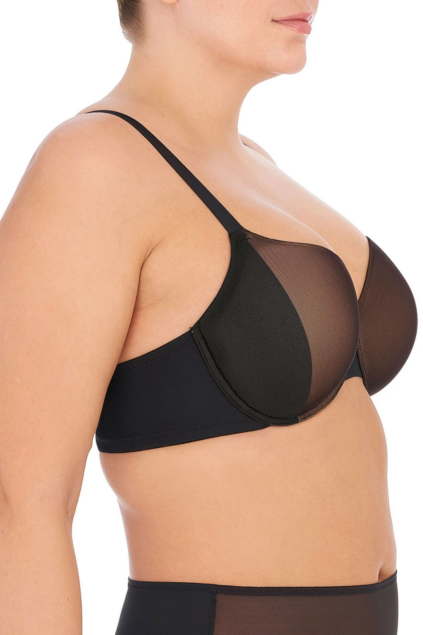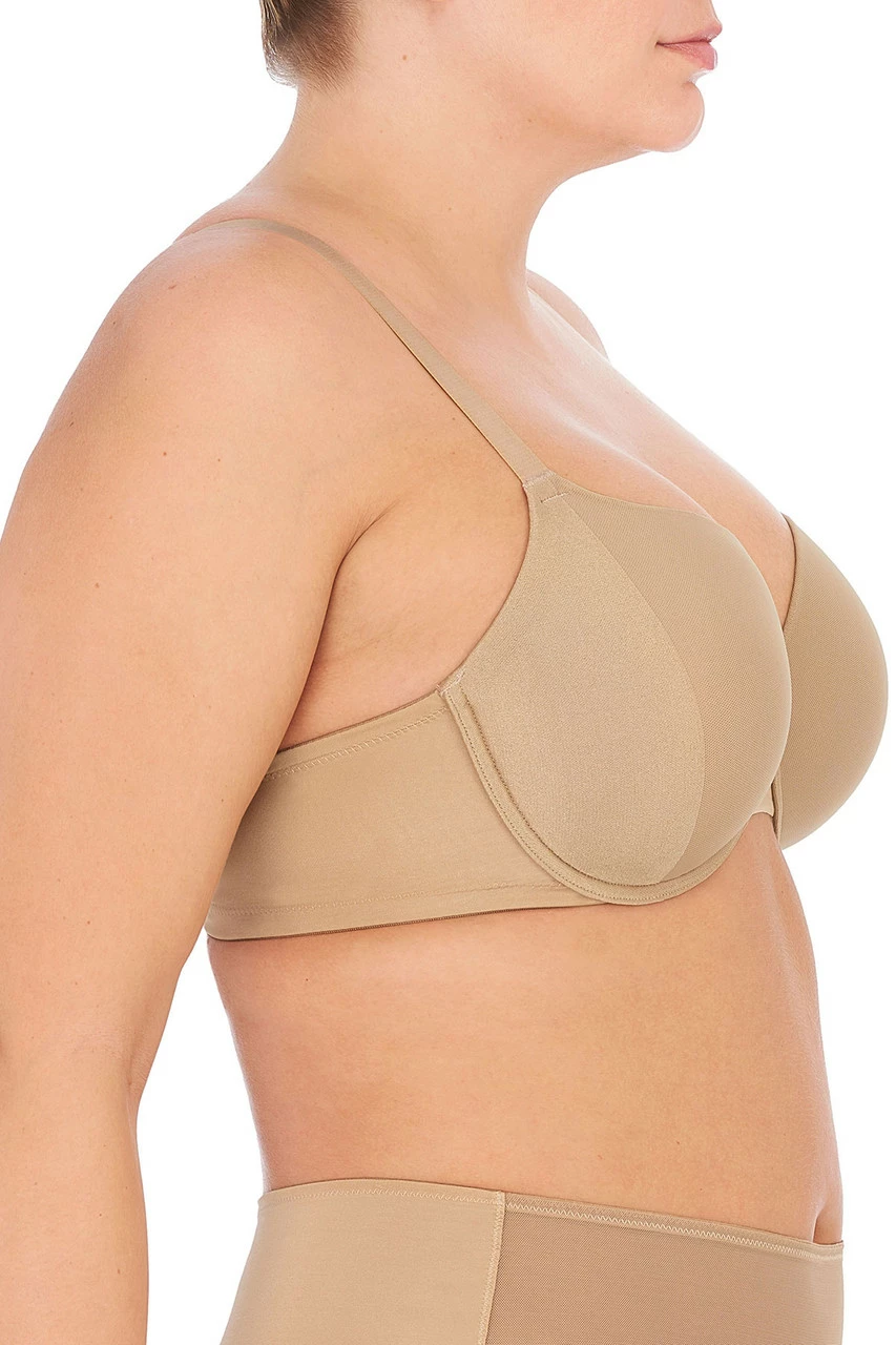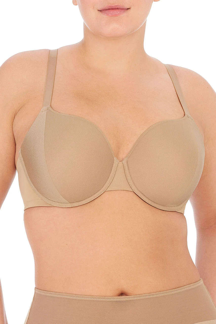 An innovative full coverage T-shirt bra offering strategic support to slim your sides for a flattering fit.