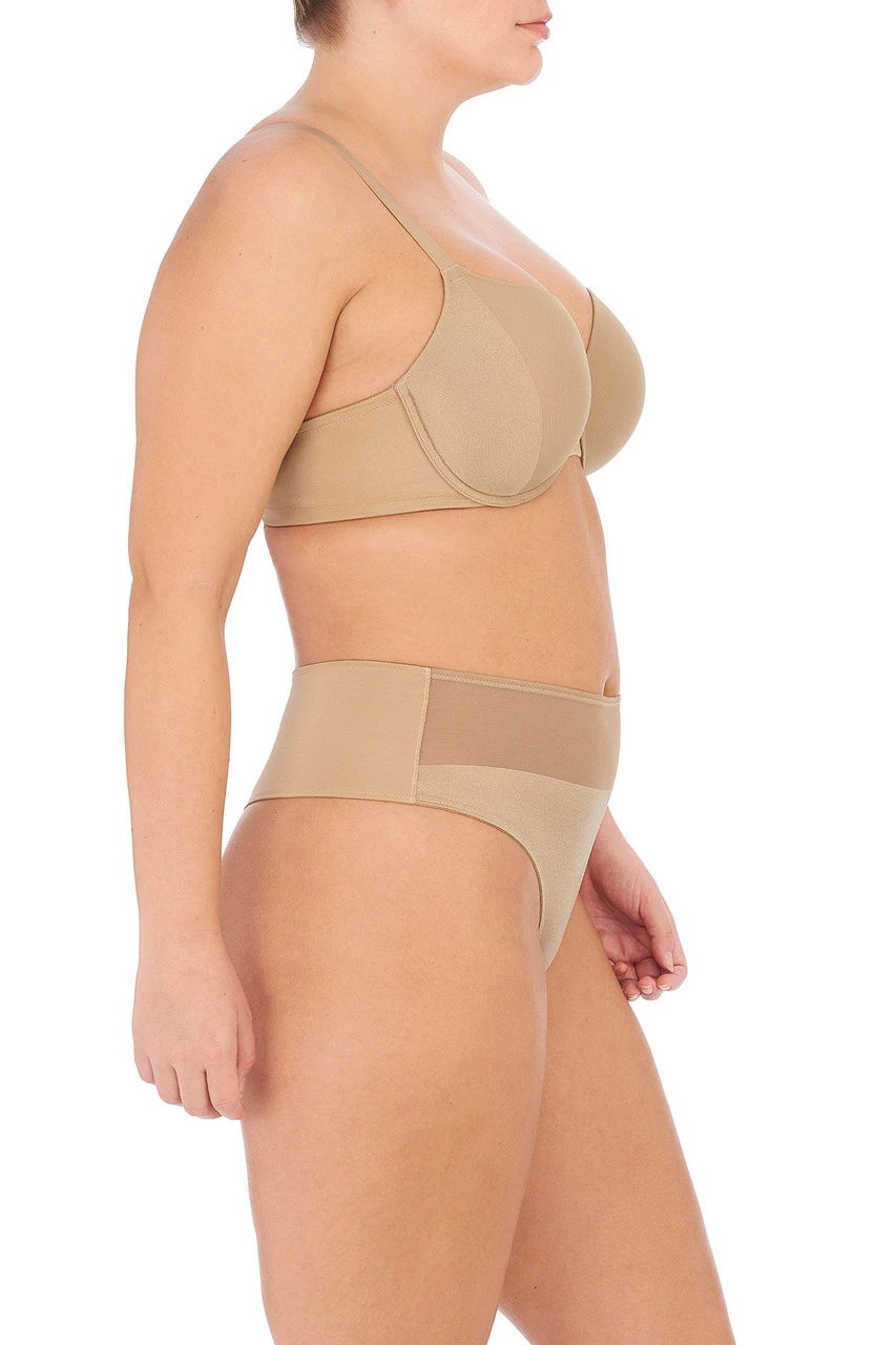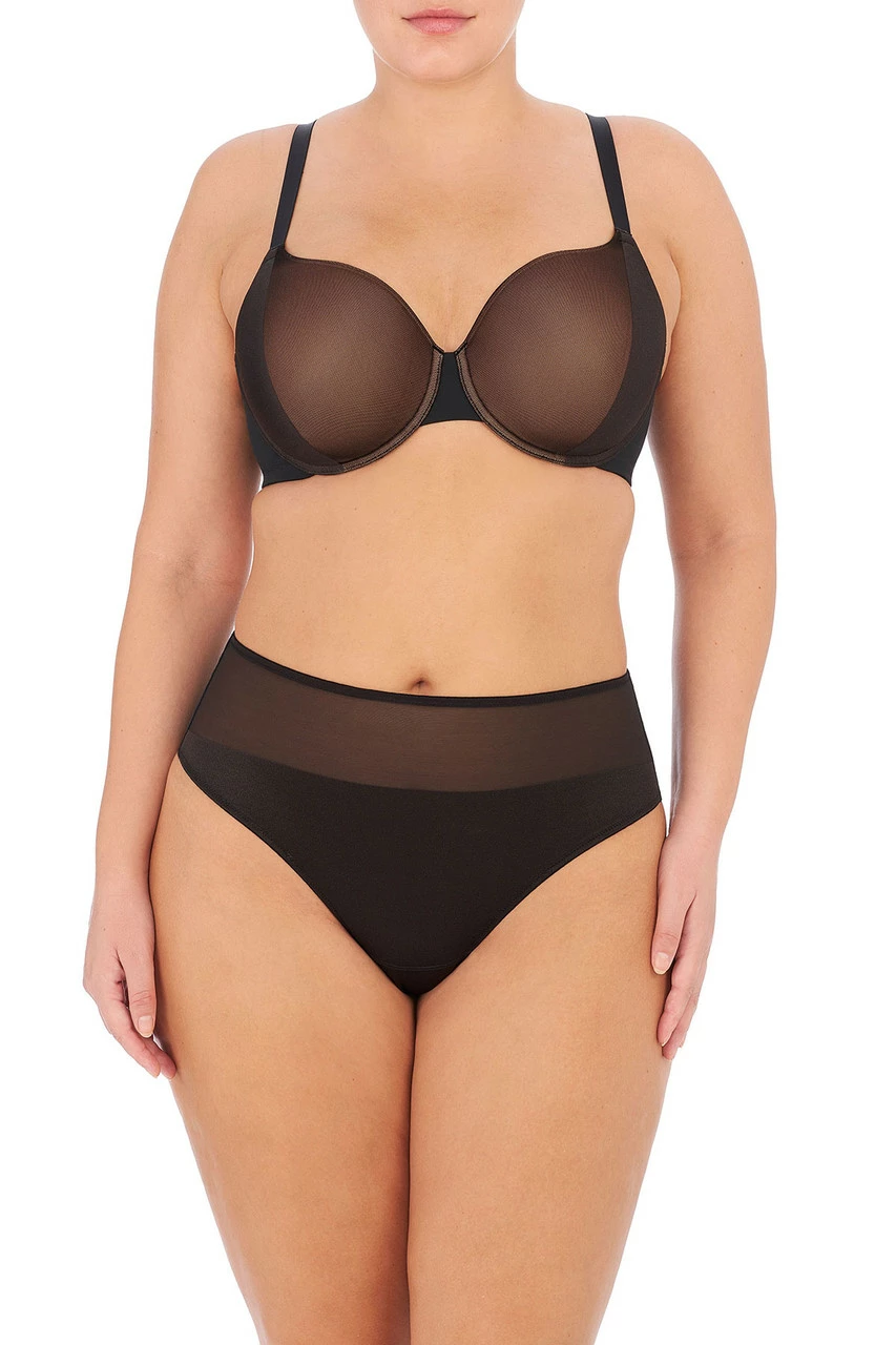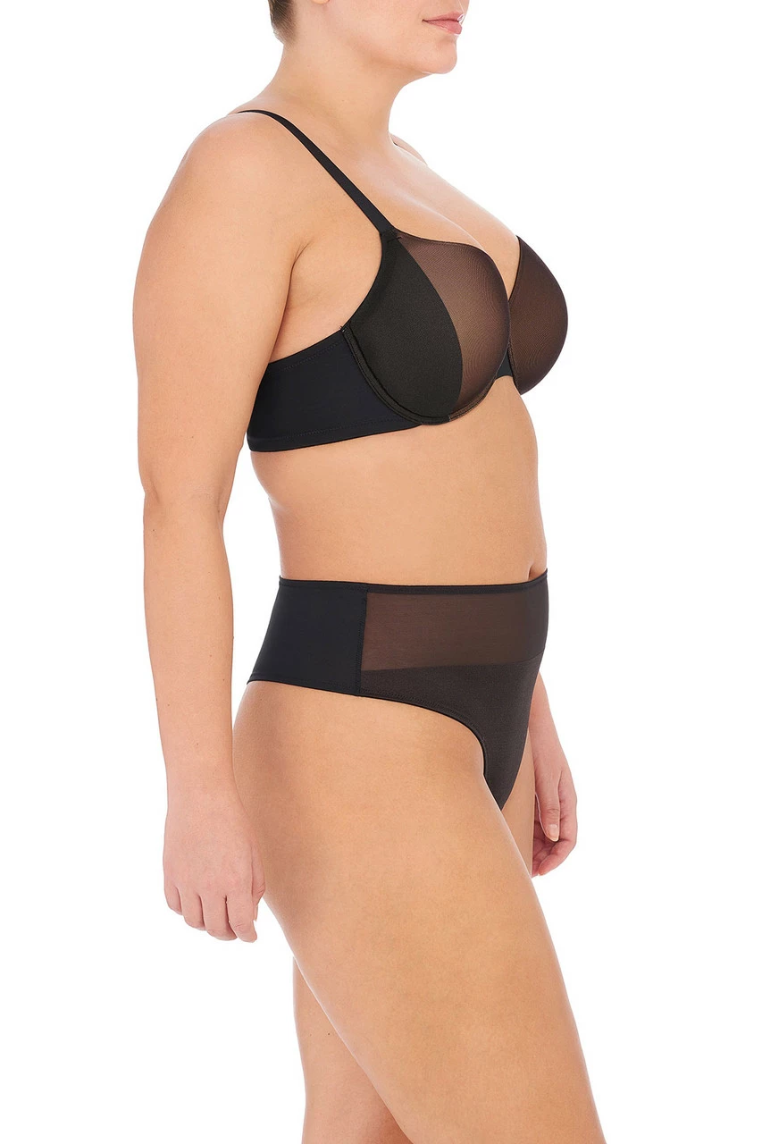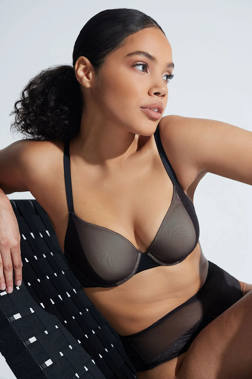 An innovative full coverage T-shirt bra offering strategic support to slim your sides for a flattering fit.