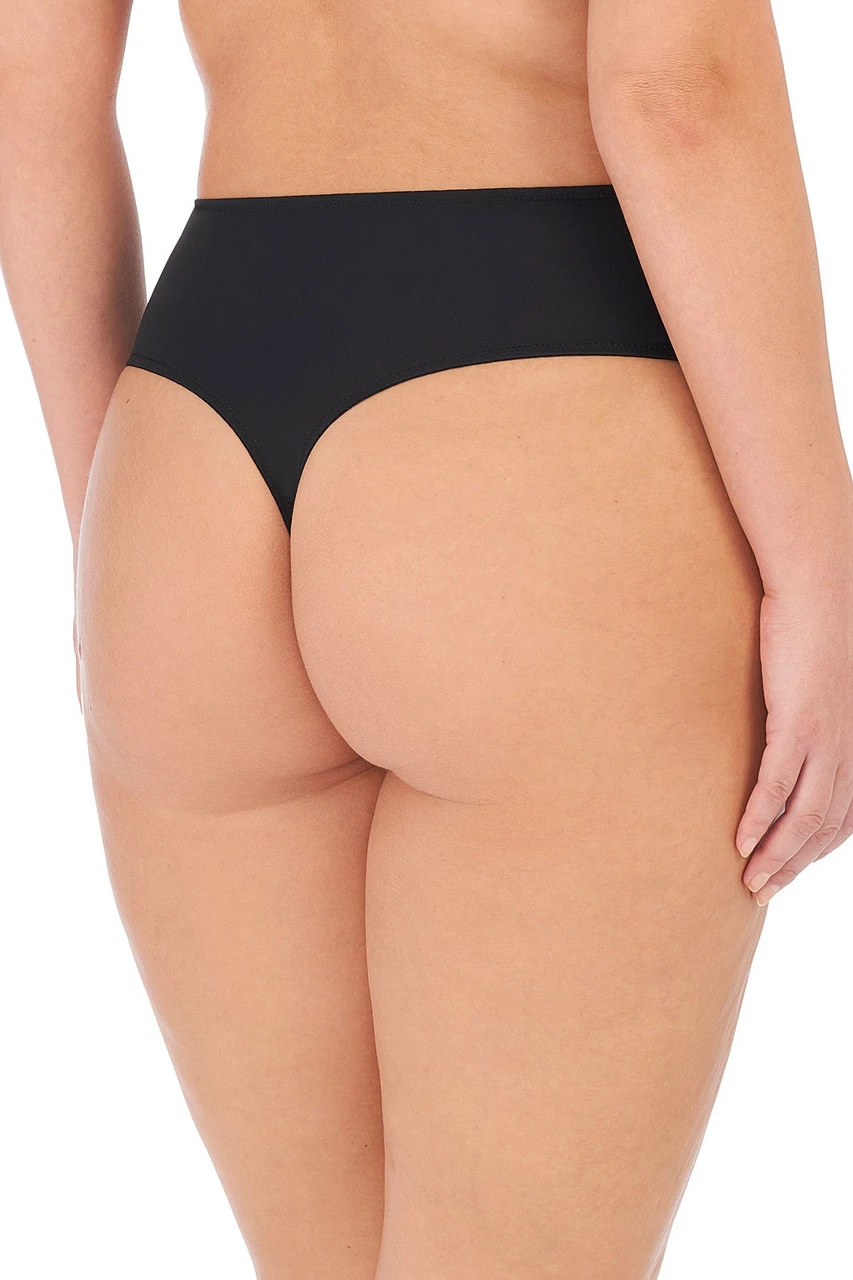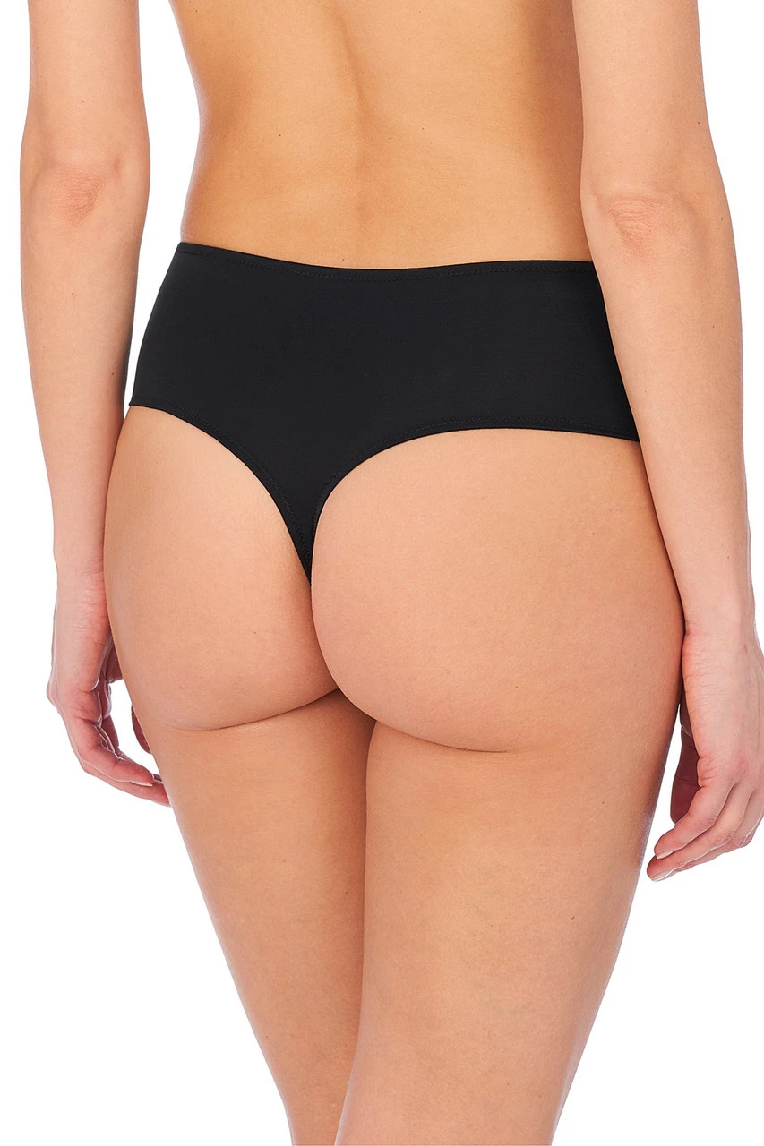 High rise thong crafted with sheer mesh and sleek fabric, for a flattering, comfortable fit that looks just as good as it feels.