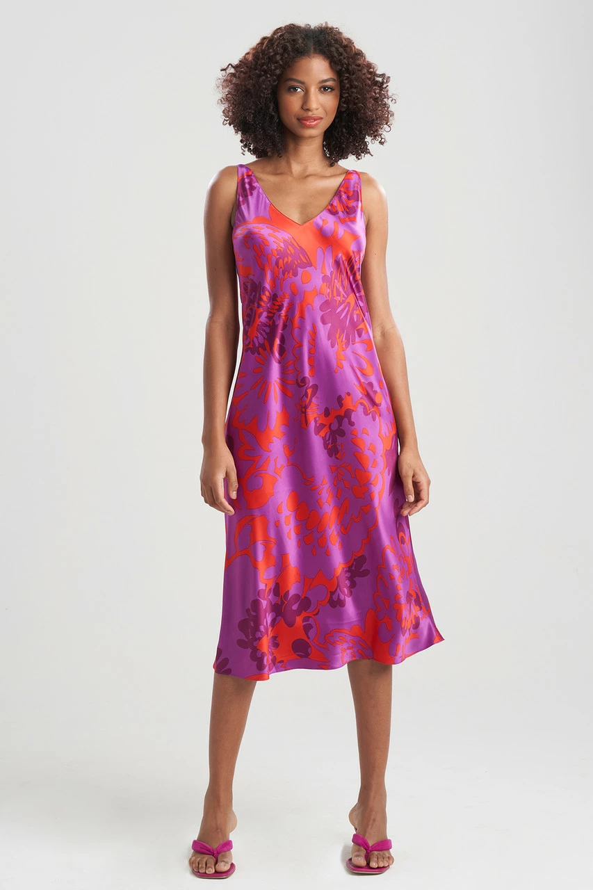 Printed stretch satin to wear in or out.