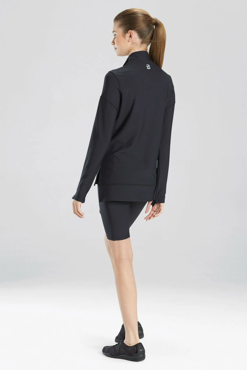 Long sleeve with cuffs and thumb-holes, mock neck jacket. Side seam inside pockets, seaming details. Reflective dragon logo (outside heat seal). Tagless.