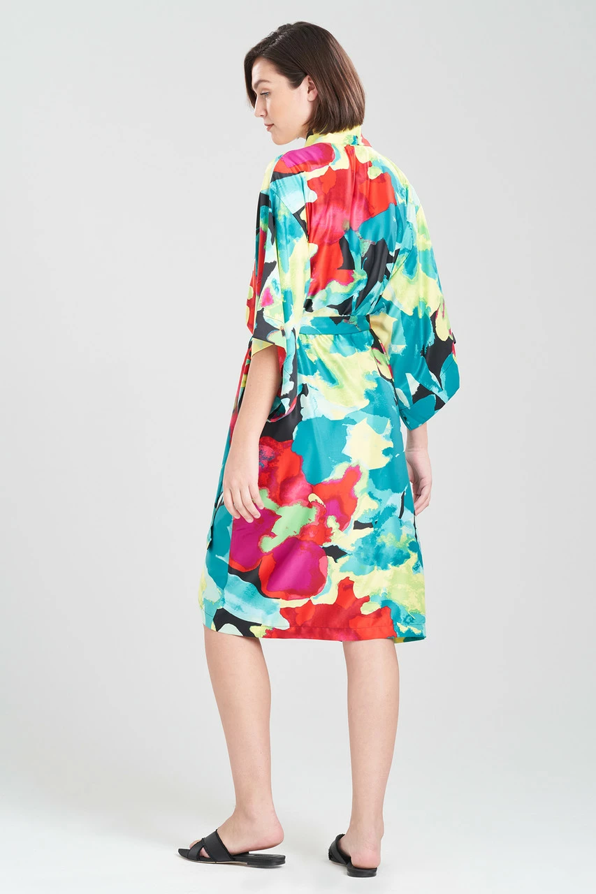 Vibrant watercolor floral design adds exquisite style to your wardrobe.