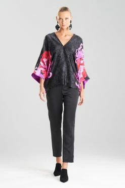 - Our glossy, silk charmeuse kimono sleeve top with a V-neck