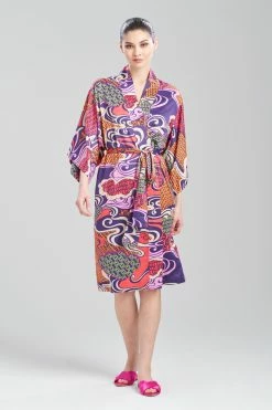 This women’s robe has a striking flow of vibrant colors printed on silky charmeuse.