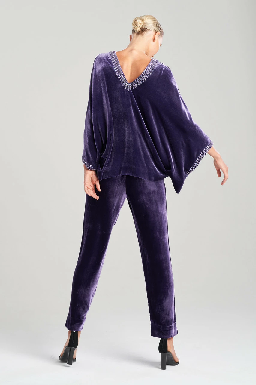 - Our plush velvet kimono sleeve top with a V-neck and delicate beading